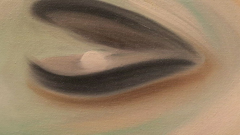 In this painting, I symbolically express the state of being in both worlds at once — the inner and the outer — and the process of finding those deep gifts that rise to the surface.